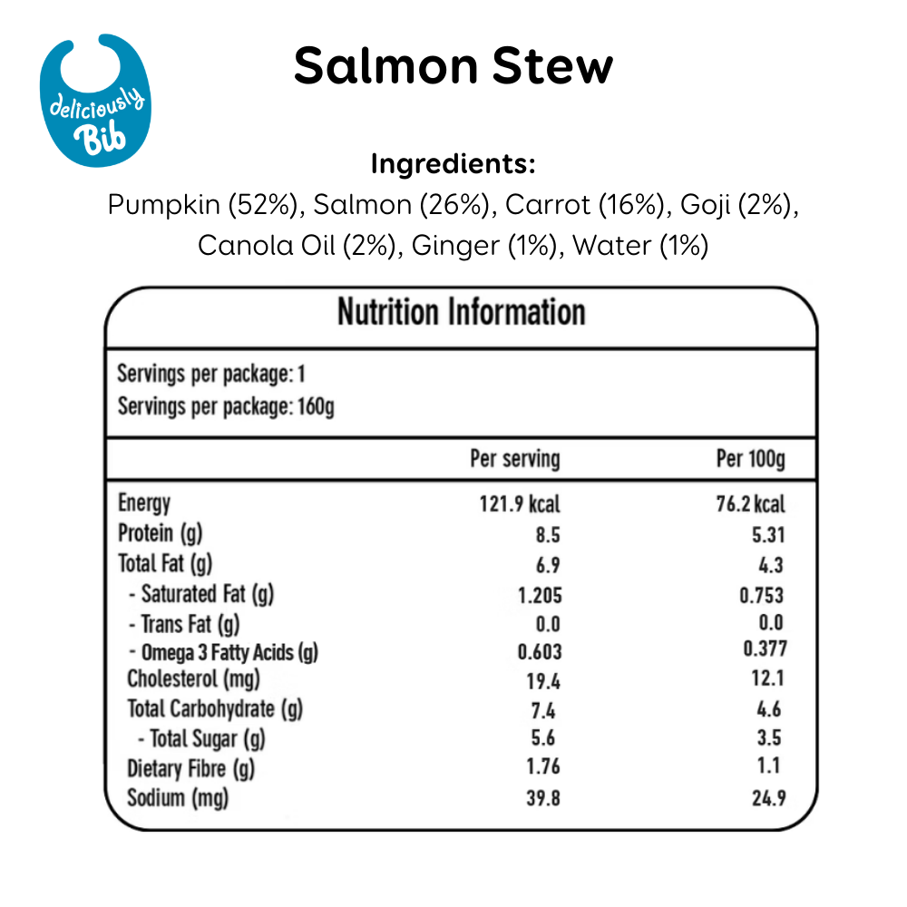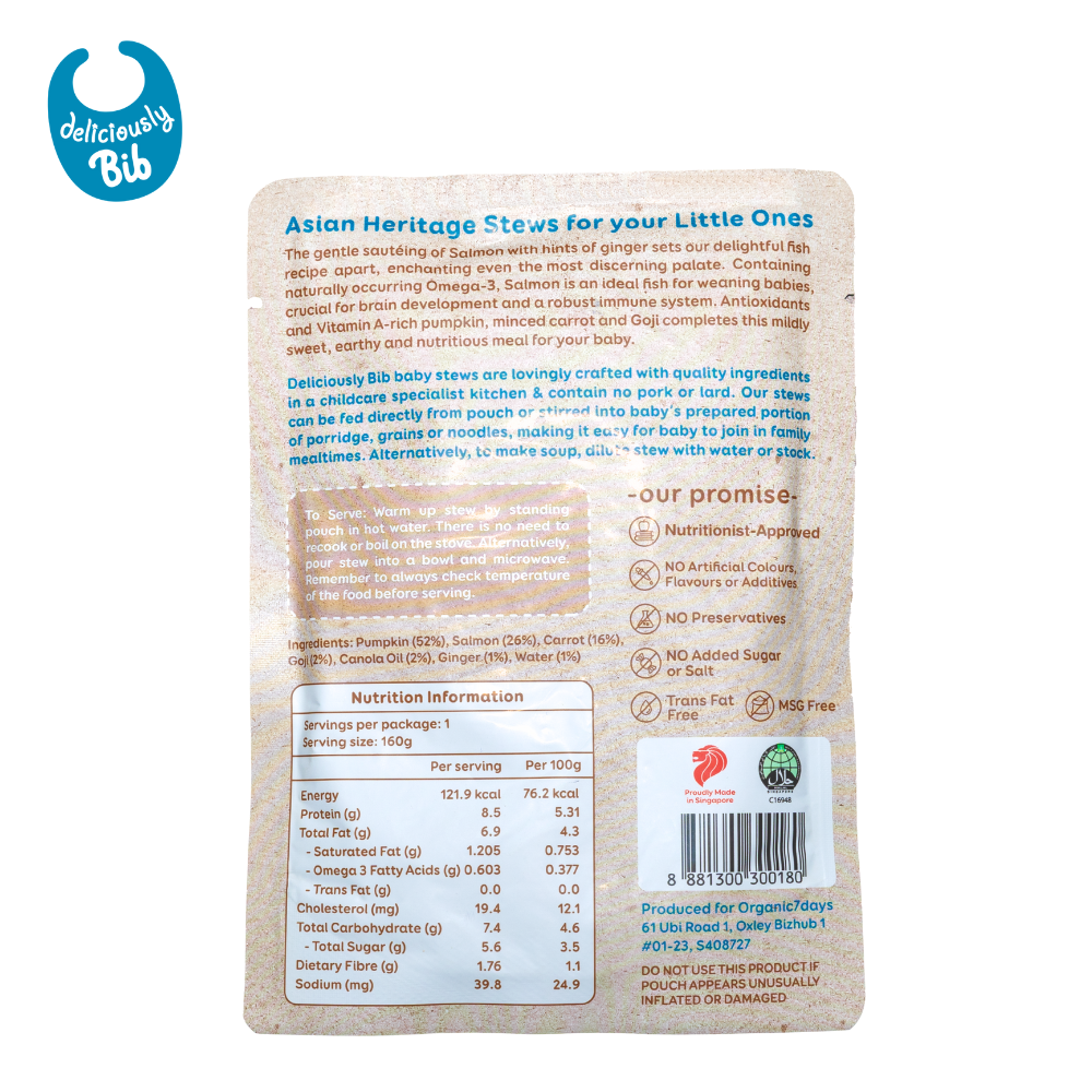 The gentle sautéing of Salmon with hints of ginger sets our delightful fish recipe apart, enchanting even the most discerning palate. Containing naturally occurring Omega-3, Salmon is an ideal fish for weaning babies, crucial for brain development and a robust immune system. Antioxidants and Vitamin A-rich pumpkin, minced carrot, and Goji complete this mildly sweet, earthy, and nutritious meal for your baby.